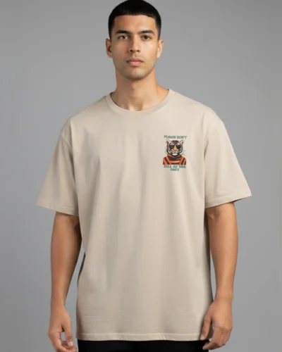 Product Description: T-shirt. Round neck with dropped shoulders, half-length sleeves, chest and back print design. Clean, precise double-needle stitching along the neckline ensures long-lasting strength and a premium look. The inner neck seam is lined with self-binding tape, providing a finished look and enhanced wearer comfort by reducing friction against the skin. Crafted with premium cotton fabric.