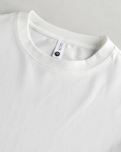 Product Description: T-shirt. Round neck with half-length sleeves, featuring embroidered logo detailing in front and back. Clean, precise double-needle stitching along the neckline ensures long-lasting strength and a premium look. The inner neck seam is lined with self-binding tape, providing a finished look and enhanced wearer comfort by reducing friction against the skin. Crafted with heavy 100% cotton fabric.