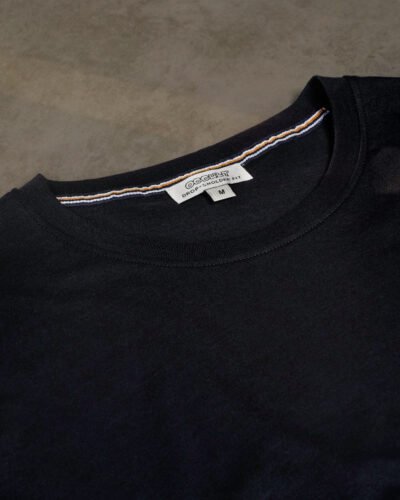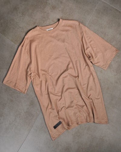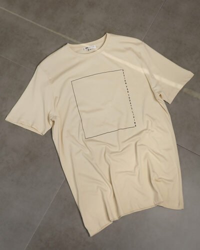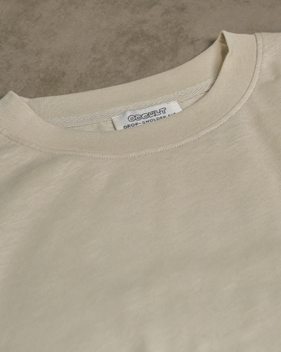 Product description : Drop shoulder T-shirt in round neck and rib details with DTM twill tape. Short sleeve with bottom patch details. Straight hem.