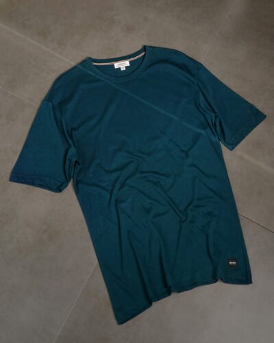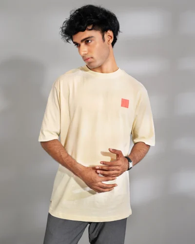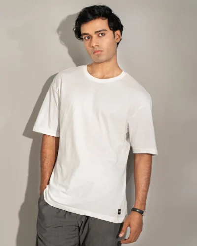 Product Description: T-shirt. Round neck with dropped shoulders and half-length sleeves. Crafted from a premium blend of cotton and polyester, the fabric provides a soft and breathable feel against the skin while ensuring durability and shape retention. The high-quality cotton makes it comfortable to wear throughout the day. The polyester component adds resilience, helping the t-shirt maintain its structure even after multiple washes.