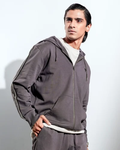 Product Description: Regular fit full zipper knit hoodie. Crafted from a soft, high-quality 300 GSM terry fabric that feels comfortable on the skin, making it ideal for all-day wear. Sleeve with tricot tape, chest patch logo design and bottom loop patch with rib hem details.