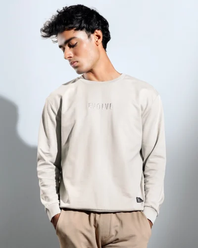 Product Description: Relaxed fit pullover. Round neck with full-length sleeves with ribbed cuff and ribbed hem, featuring embroidered signature logo detailing near the hem. Clean, precise double-needle stitching along the neckline ensures long-lasting strength and a premium look. The inner neck seam is lined with a self-binding tape, offering a finished look and increased wearer comfort by reducing friction against the skin. . Crafted from a soft, high-quality 300 GSM combed airtech cotton fabric that feels comfortable on the skin, making it ideal for all-day wear.
