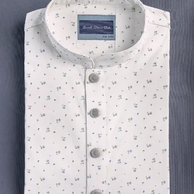 Men’s regular fit Panjabi in viscose fabric with band collar  & sleeve cuff piping details. Decorative stitch &  metal snap button, long Sleeve, straight hem.