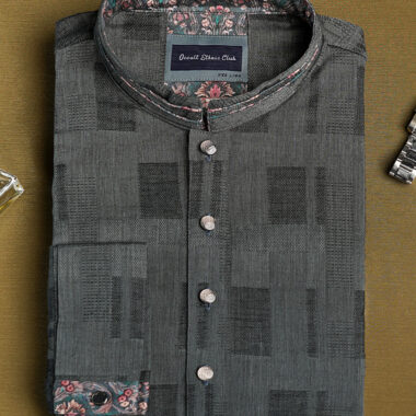 ITEM DESCRIPTIONS:   Men’s Premium fancy Cotton regular fit panjabi.  Band Collar. Collar band & sleeve cuff has embroidery details. Decorative metal snap button, long Sleeve, straight hem.
