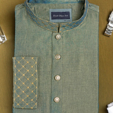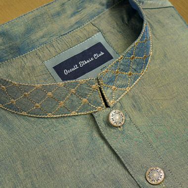 ITEM DESCRIPTIONS:   Men’s Premium Two Tone Silk semi slim fit panjabi For Eid. Collar band embroidery design. Moon has cut & sew design. Sleeve on embroidery design. Long Sleeve, straight hem.