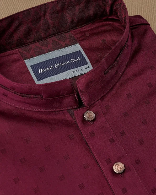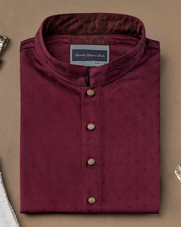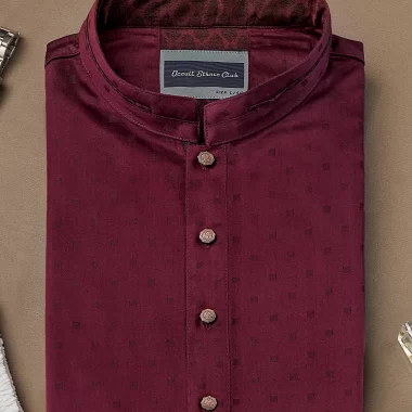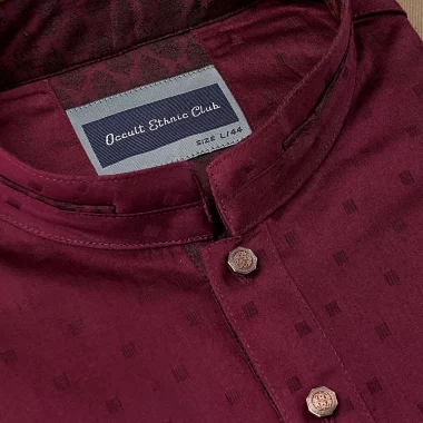 Men’s fancy cotton slim fit panjabi. Band Collar with contrast piping. Button placket with contrast fabric & show button. Moon has cut & sew contrast design. Long Sleeve with contrast piping, straight hem.
