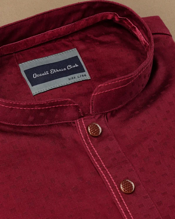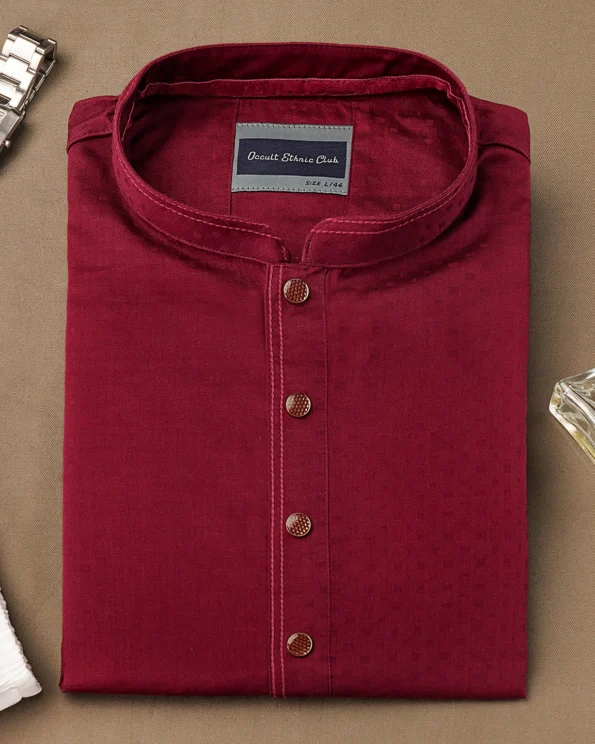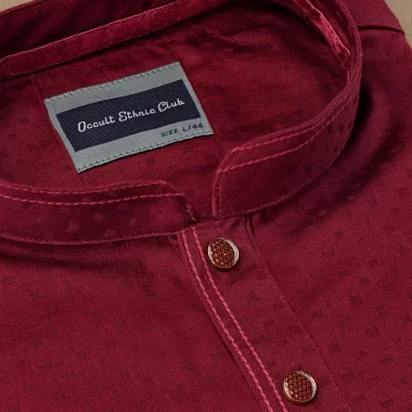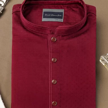 Men’s fancy cotton slim fit panjabi. Manderin Collar with decorative stitch. Button placket with decorative stitch & show button . Inside button Plackets has twill tape details . Moon has cut & sew design. Long Sleeve, straight hem.