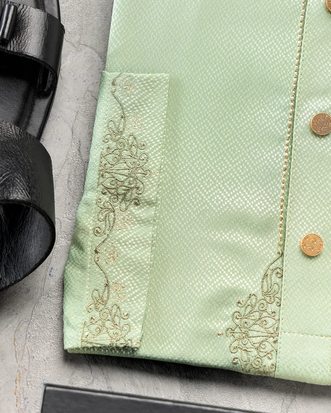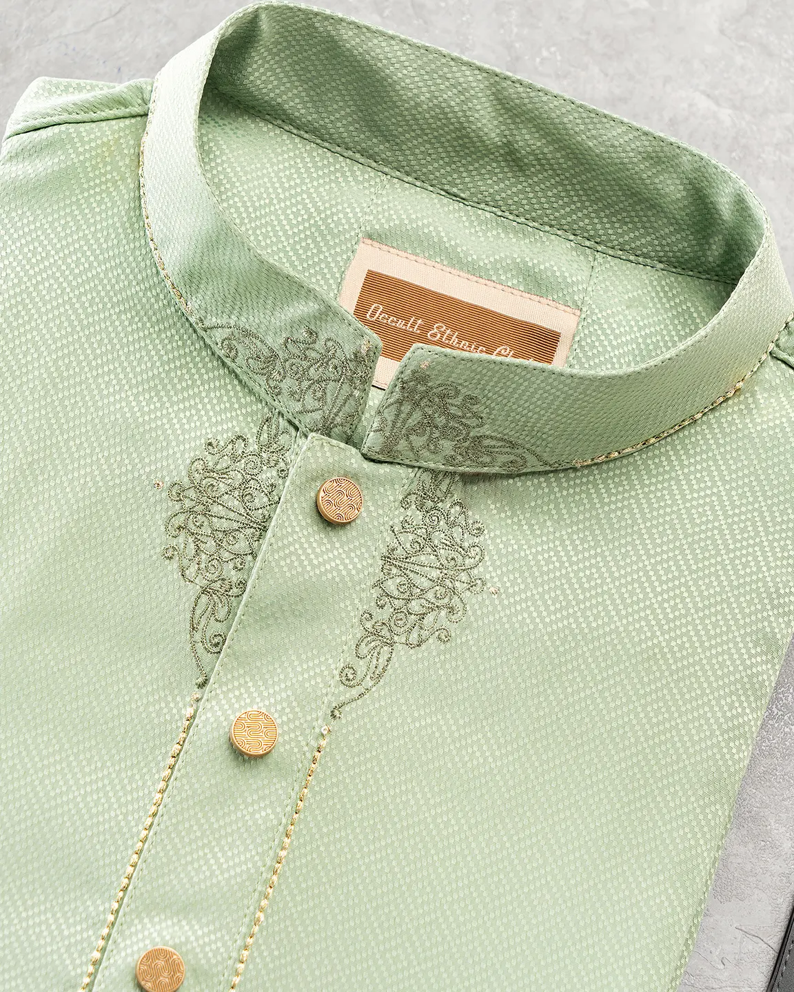 Product Description : Men’s Rayon Viscose regular fit panjabi For Eid. Band Collar. Collar band, Body & sleeve has embroidery details. Decorative metal show button, long Sleeve, straight hem.
