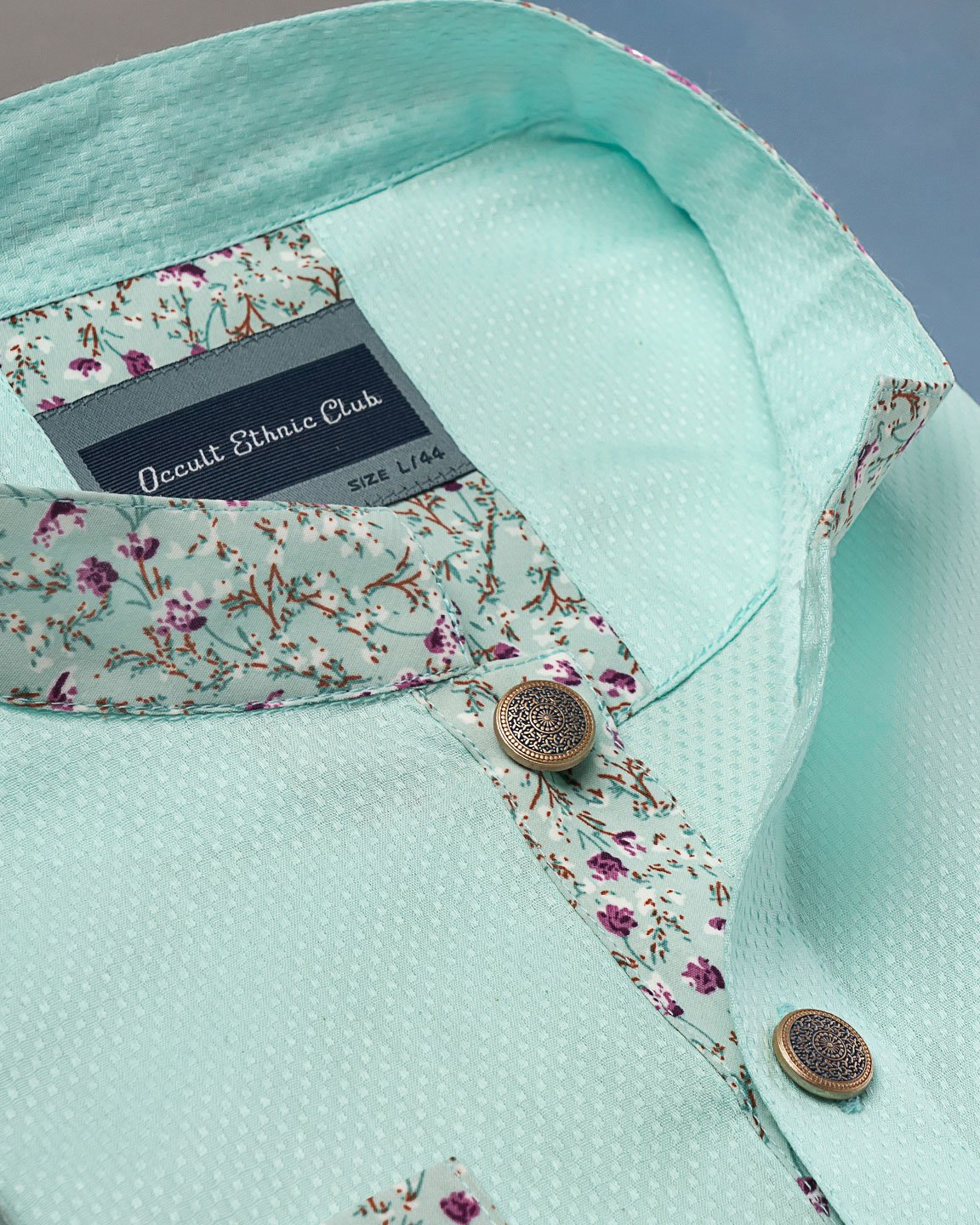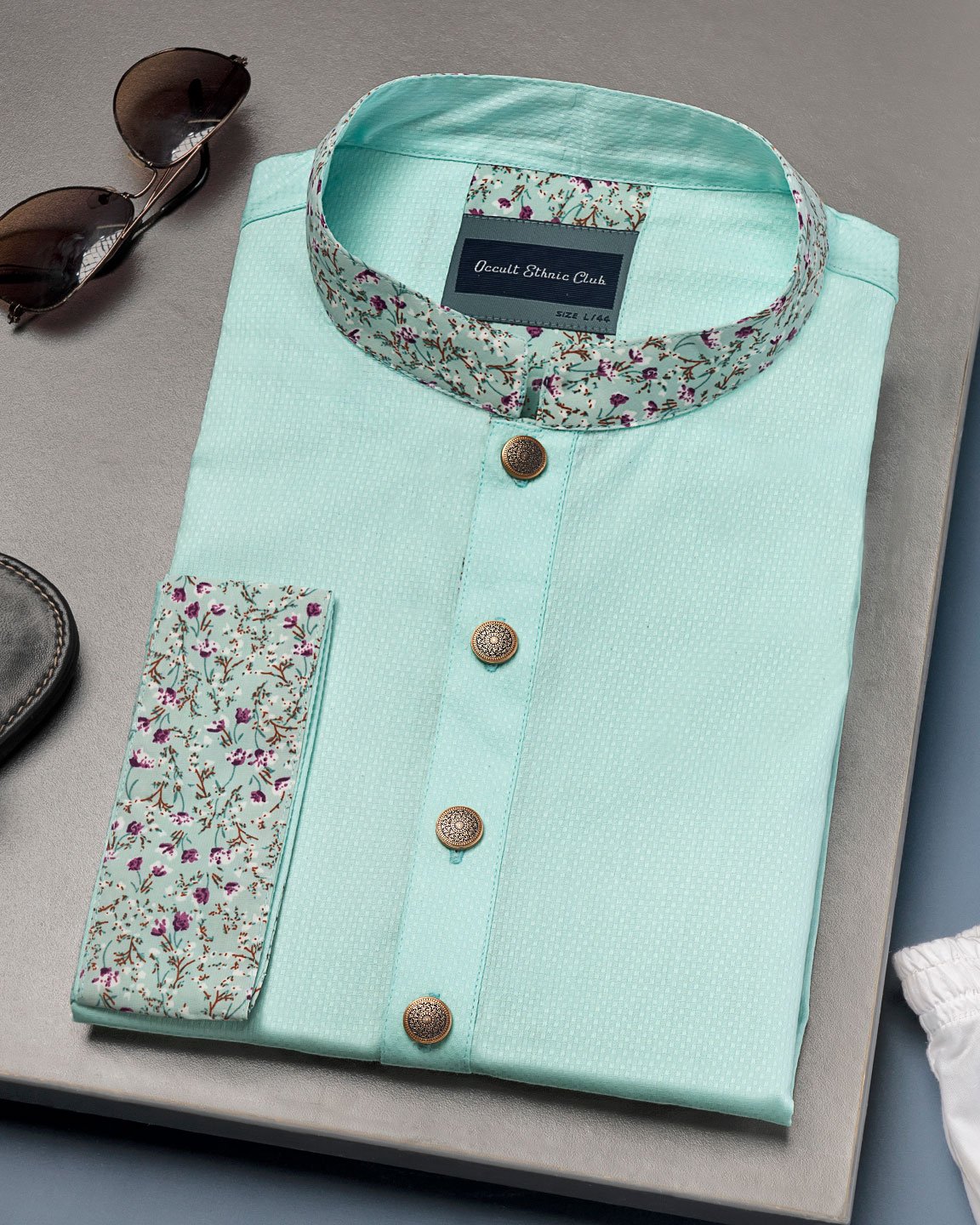 Occult ethnic club men’s panjabi with decorative show button.