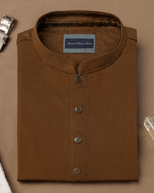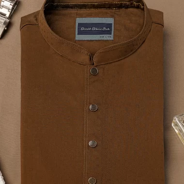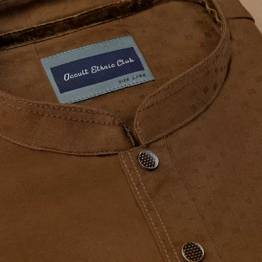 Men’s fancy cotton slim fit panjabi. Manderin Collar with decorative stitch. Button placket with decorative stitch & show button . Inside button Plackets has twill tape details . Moon has cut & sew design. Long Sleeve, straight hem.