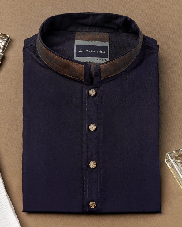 Sold OutMen’s fancy cotton slim fit panjabi. Band Collar with contrast piping. Button placket with show button. Moon has cut & sew contrast design. Long Sleeve with contrast piping, straight hem.