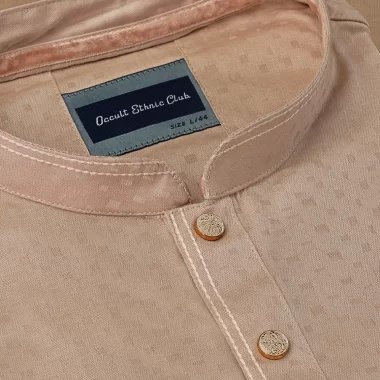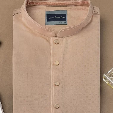 Men’s fancy cotton slim fit panjabi. Manderin Collar with decorative stitch. Button placket with decorative stitch & show button . Inside button Plackets has twill tape details . Moon has cut & sew design. Long Sleeve, straight hem.
