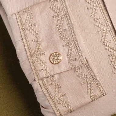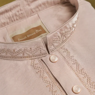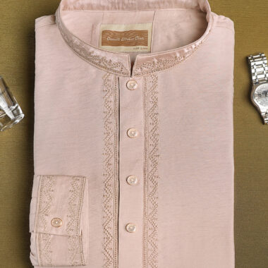 Men’s regular fit Panjabi in viscose fabric with band collar  & sleeve cuff piping details. Decorative stitch &  metal snap button, long Sleeve, straight hem.