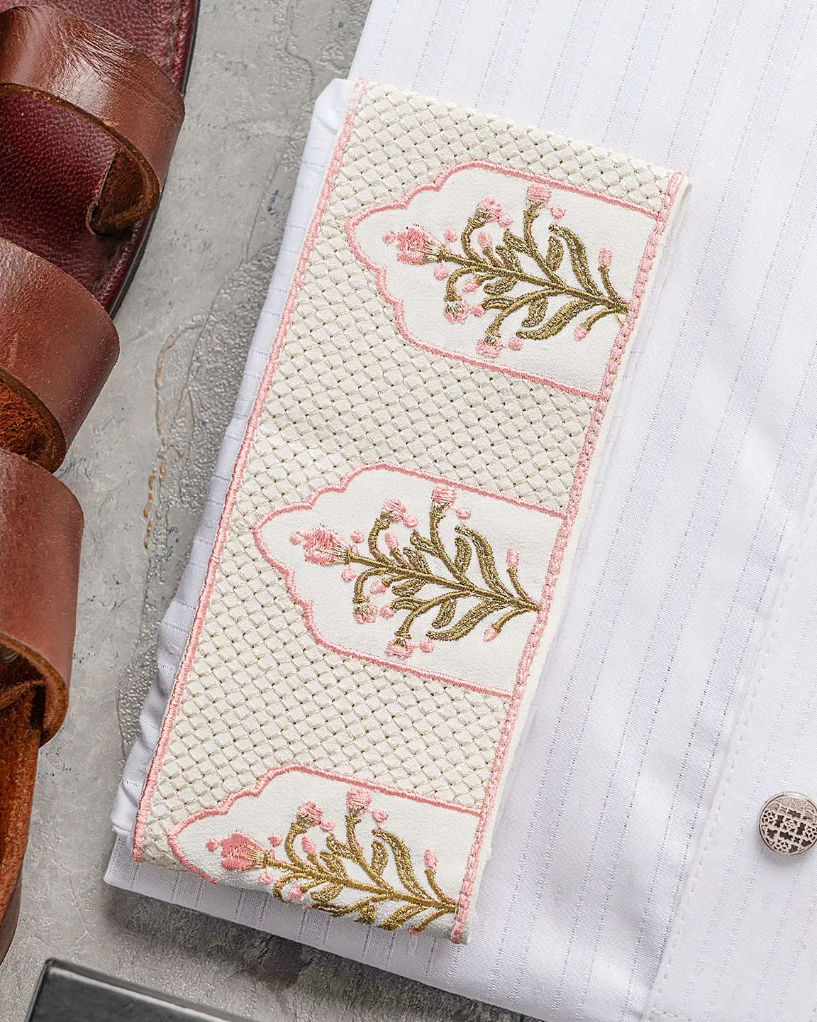 Product Description : Men’s regular fit panjabi with embroidered band collar. Plain front placket with decorative metal snap buttons. Matching cuffs with embroidery detailing. Crafted with fancy cotton fabric.