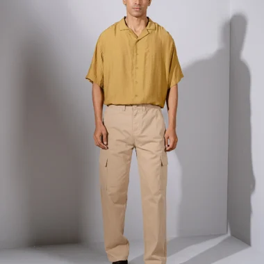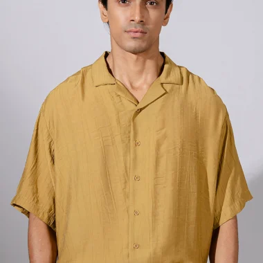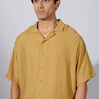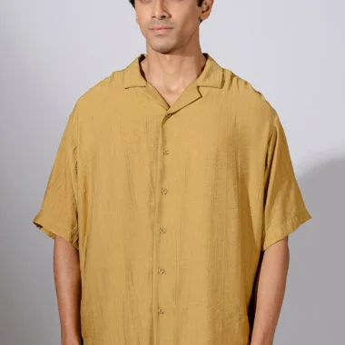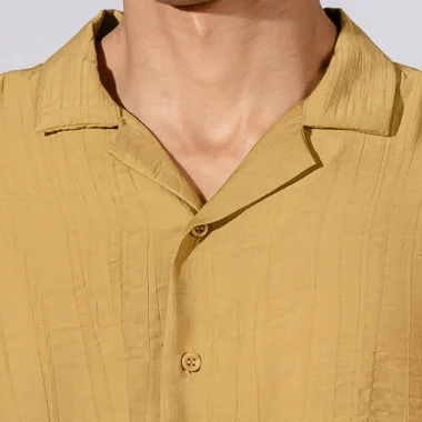 Product Description: Relaxed fit cuban collar shirt with short sleeve, back yoke and straight hem.