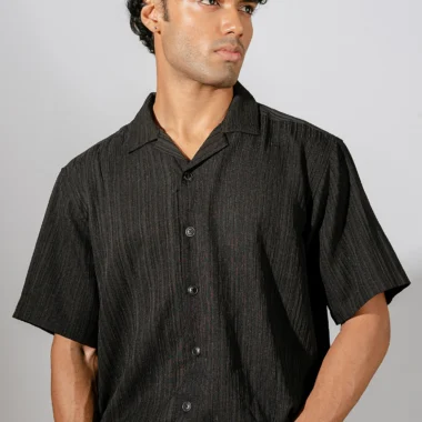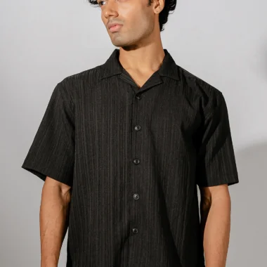 Product Description: Regular fit cuban collar shirt with short sleeve, back yoke and straight hem.