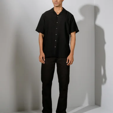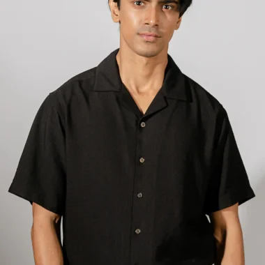 Product Description: Relaxed fit cuban collar shirt with short sleeve, back yoke and straight hem.