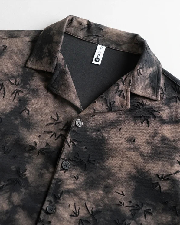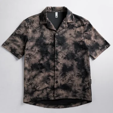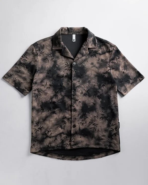Product Description: Regular-fit printed shirt with cuban collar, short sleeves, back yoke, slightly curved hemline, and a branded side label detailing. Crafted with textured cotton mix fabric.