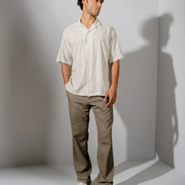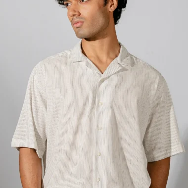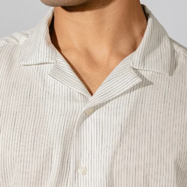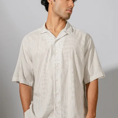 Product Description: Relaxed fit cuban collar shirt with short sleeve, back yoke and straight hem.