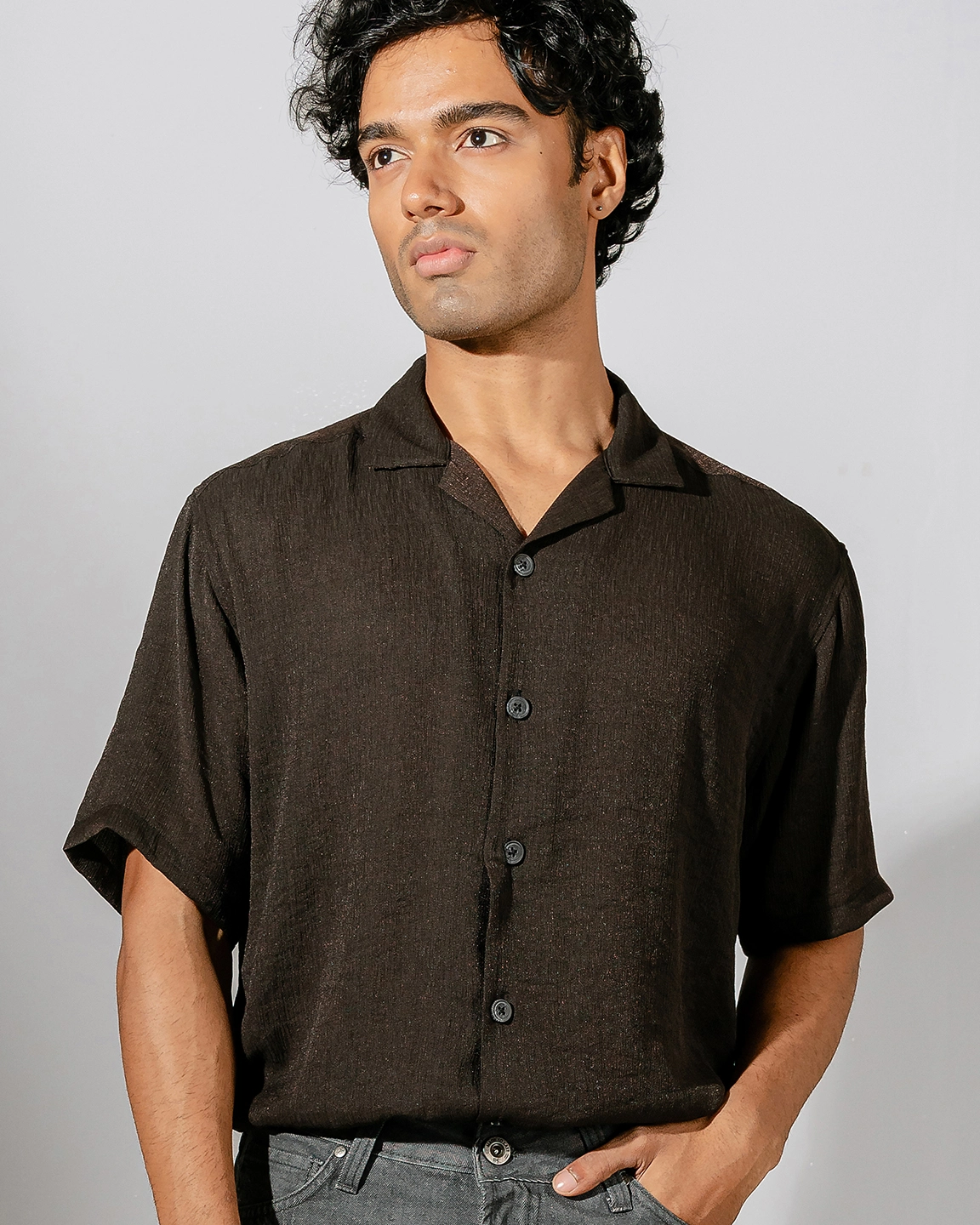 Product Description: Relaxed fit cuban collar shirt with short sleeve, back yoke and straight hem.