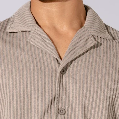 Product Description: Relaxed fit cuban collar shirt with short sleeve, back yoke and straight hem.