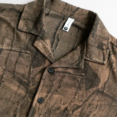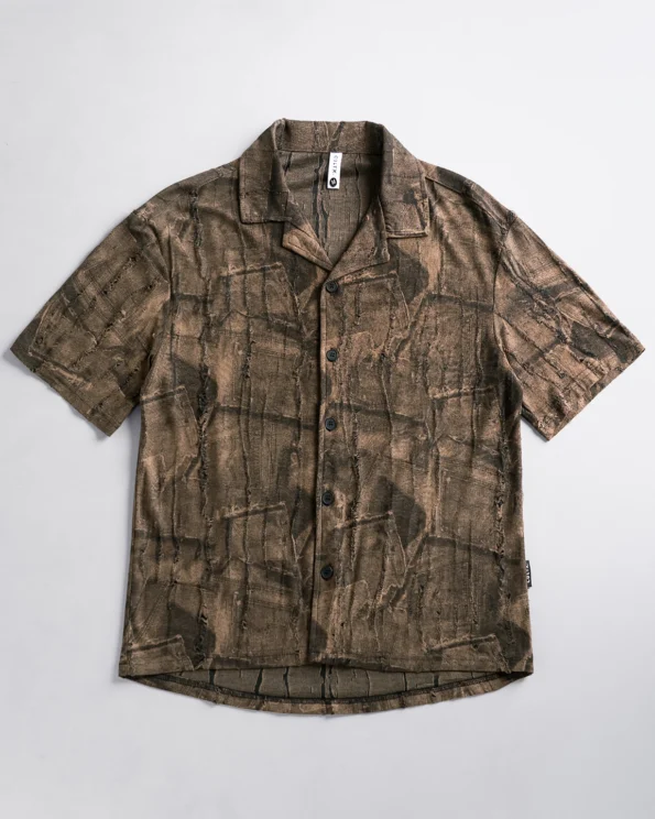 Product Description: Regular-fit printed shirt with cuban collar, short sleeves, back yoke, slightly curved hemline, and a branded side label detailing. Crafted with textured cotton mix fabric.
