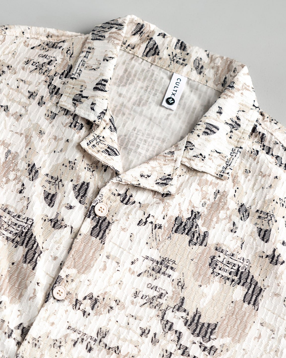 Product Description: Relaxed-fit printed shirt with cuban collar, short sleeves, back yoke, straight hemline, and a branded side label detailing. Crafted with fancy cotton fabric.
