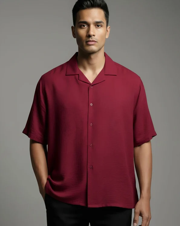Product Description : Relaxed-fit shirt with cuban collar, short sleeves, back yoke, straight hemline. Crafted with viscose cotton fabric.