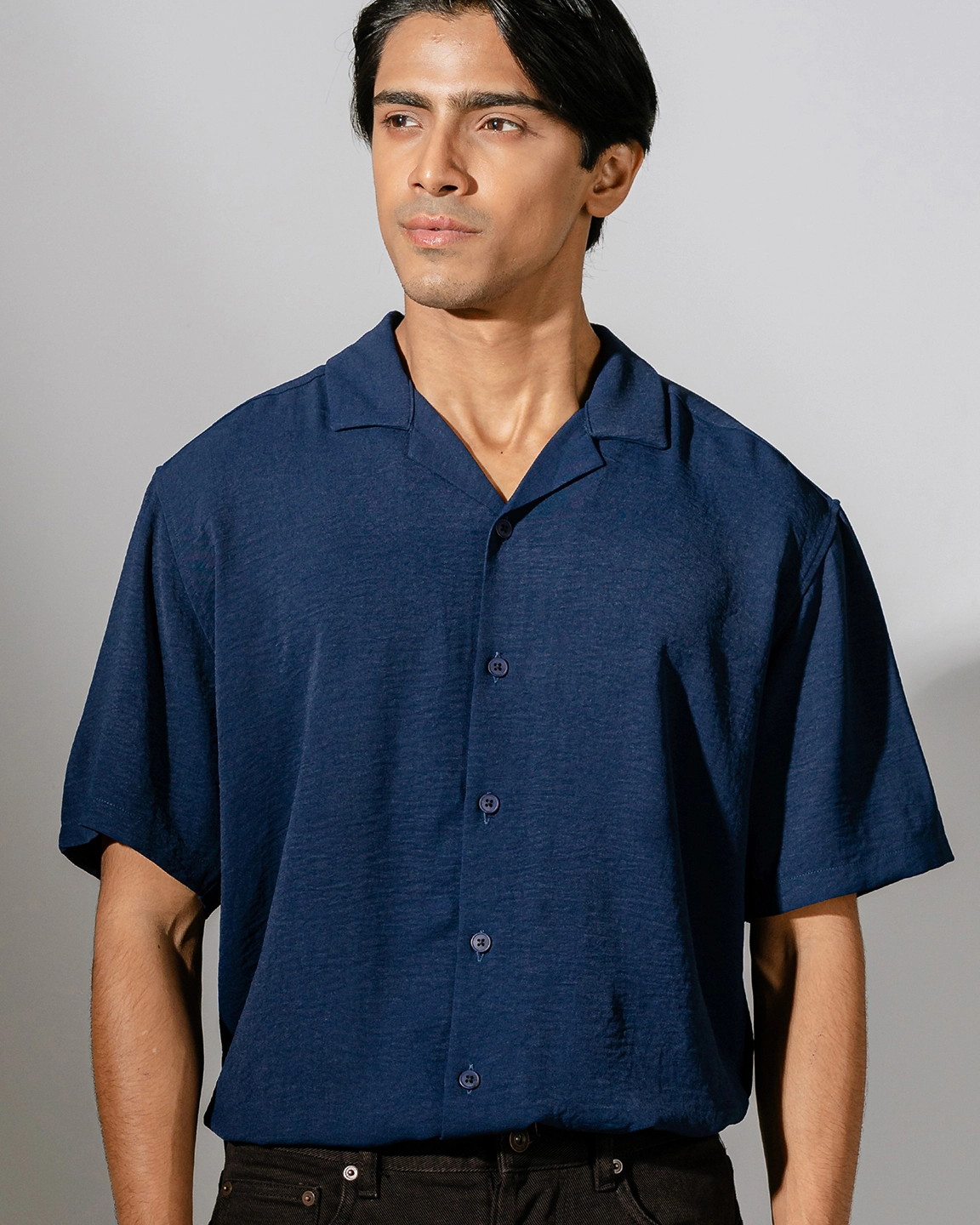 Product Description: Relaxed fit cuban collar shirt with short sleeve, back yoke and straight hem.