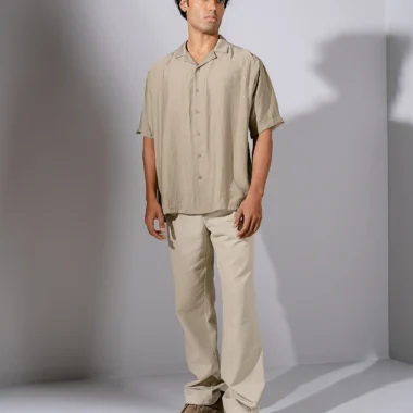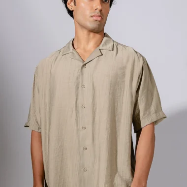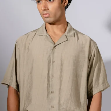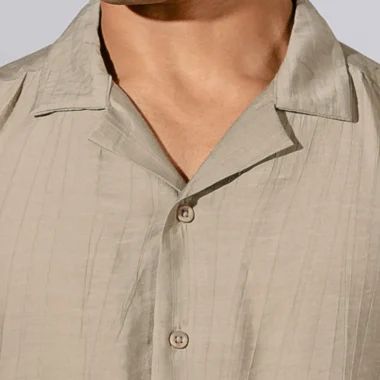 Product Description: Relaxed fit cuban collar shirt with short sleeve, back yoke and straight hem.