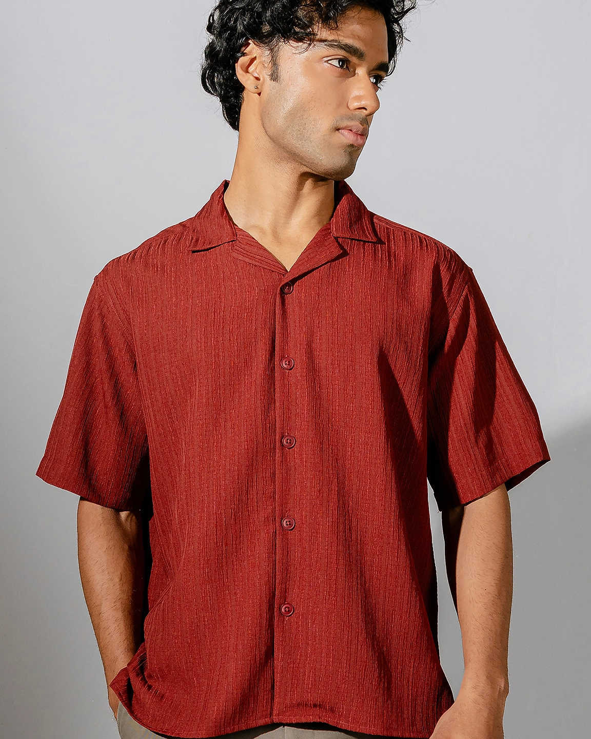 Product Description: Regular fit cuban collar shirt with short sleeve, back yoke and straight hem.