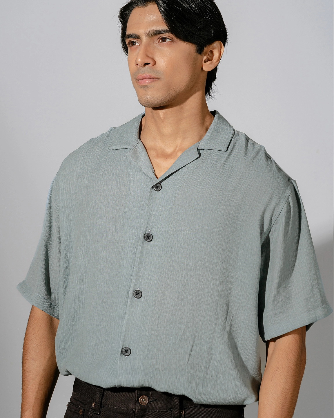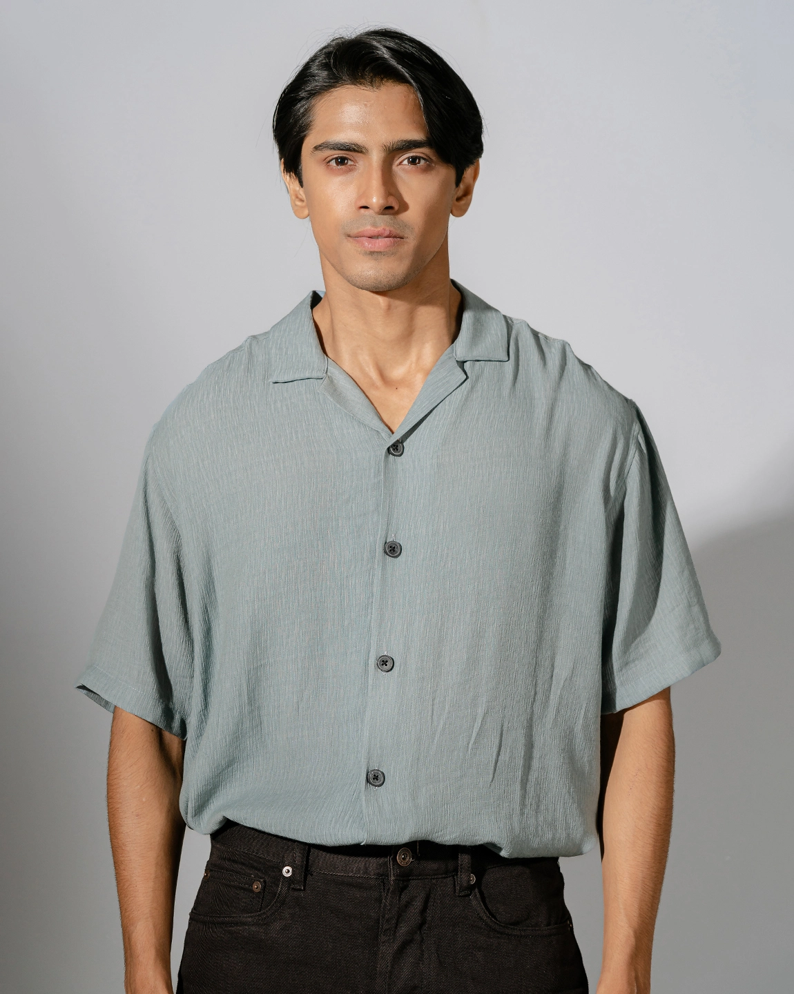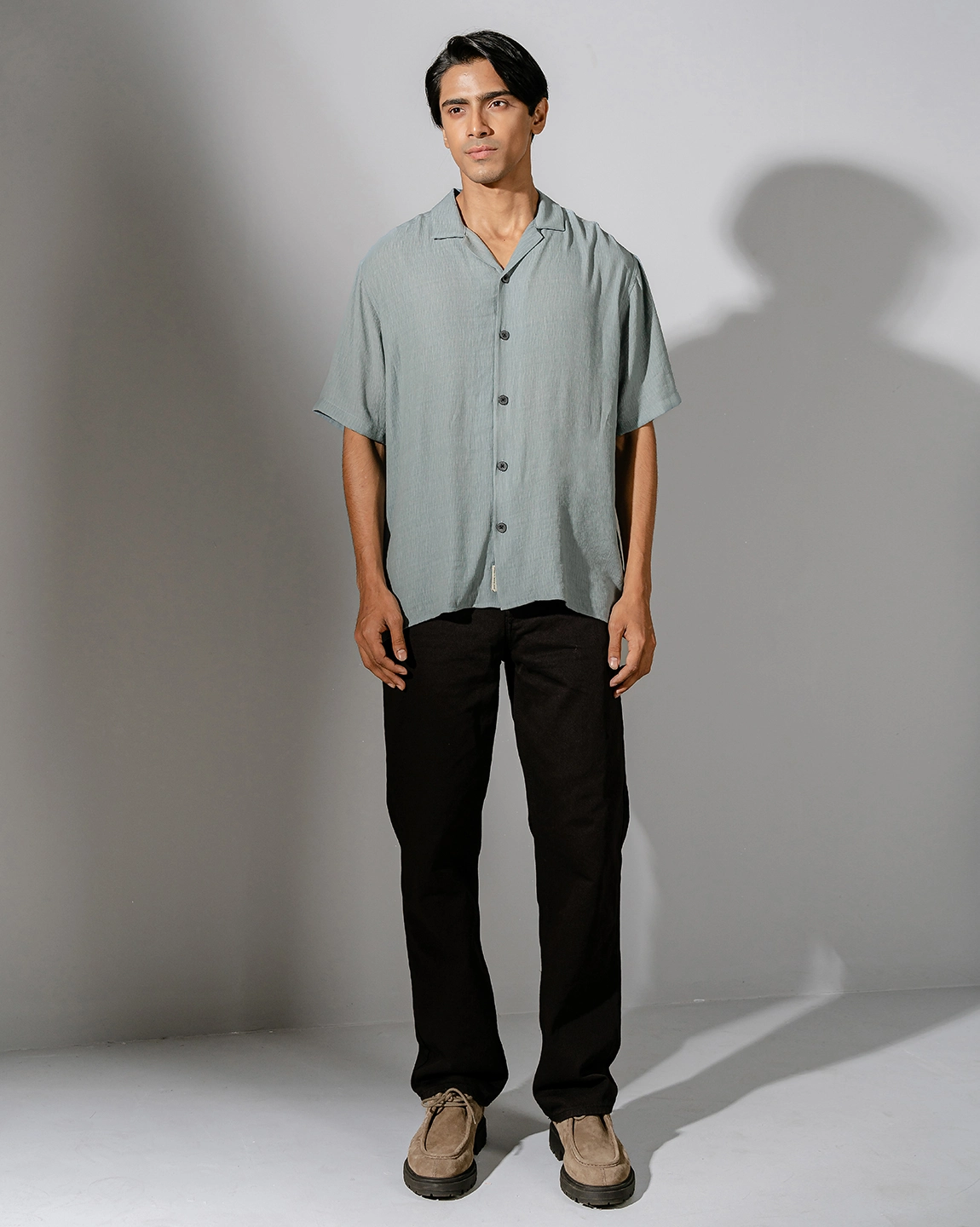 Product Description: Relaxed fit cuban collar shirt with short sleeve, back yoke and straight hem.