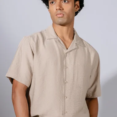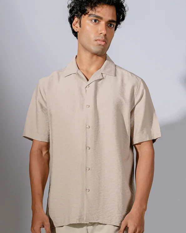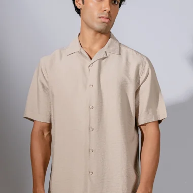 Product Description: Relaxed fit cuban collar shirt with short sleeve, back yoke and straight hem.