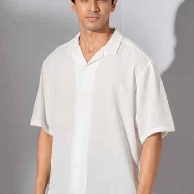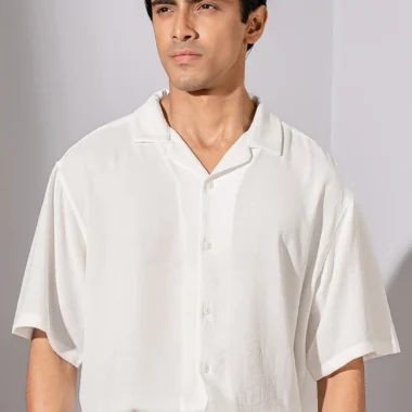 Product Description: Relaxed fit cuban collar shirt with short sleeve, back yoke and straight hem.