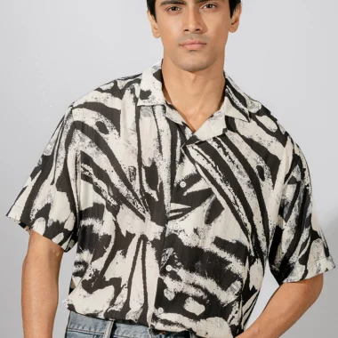 Product Description: Relaxed fit cuban collar shirt with short sleeve, back yoke and straight hem.