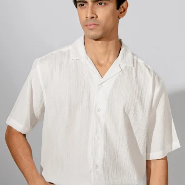 Product Description: Regular fit cuban collar shirt with short sleeve, back yoke and straight hem.