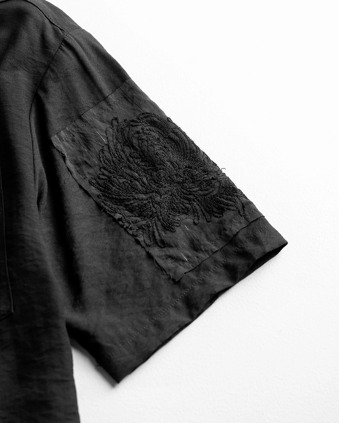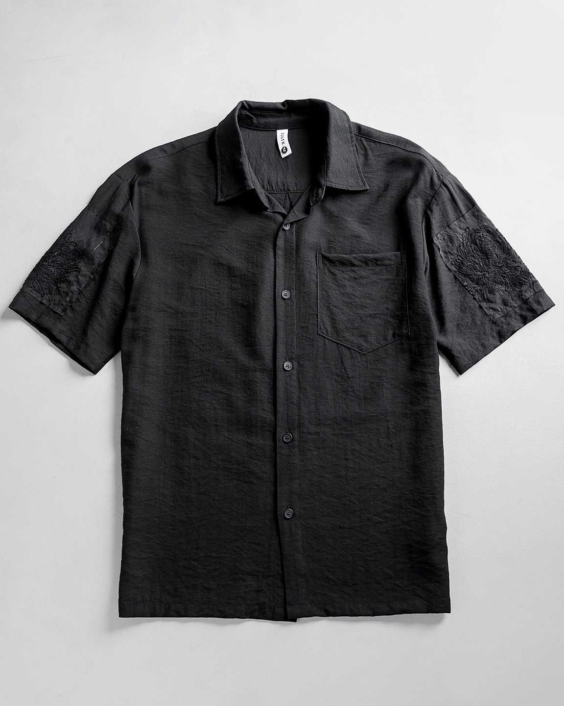 Product Description: Regular-fit shirt with spread collar, single chest pocket, short sleeves, embroidery detailing in sleeves and back, back yoke, and straight hem.