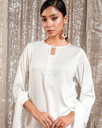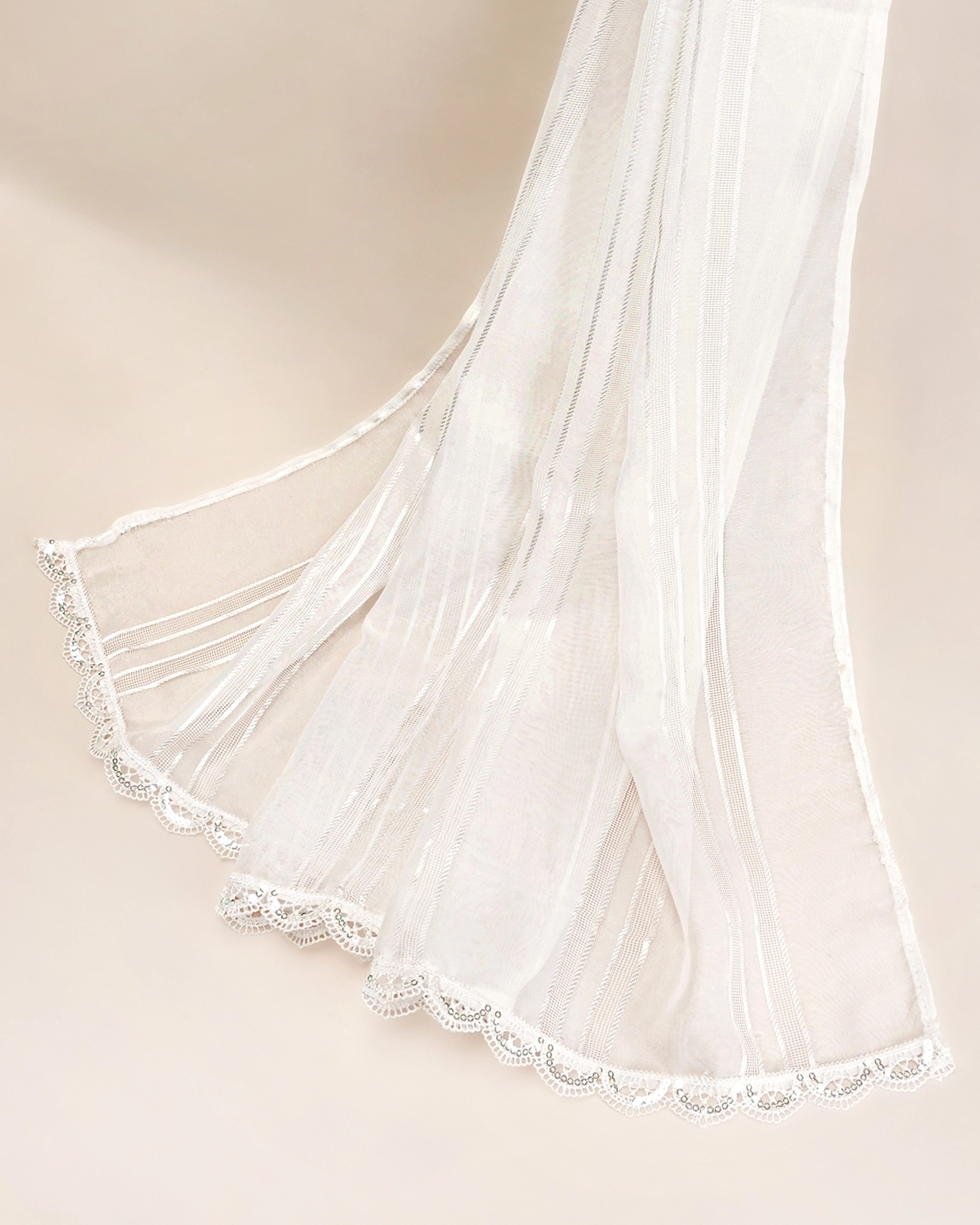 Premium Organza Stripped Dupatta | Panel White