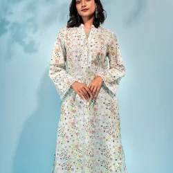 Female A-line Round Neck long Kurta By AMNA | Cream