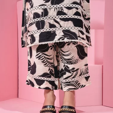 Printed Cotton co-ord kurta and bottom set by AMNA | Black