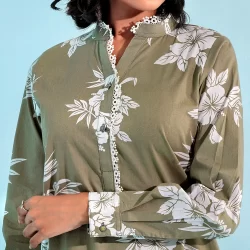 Printed cotton co-ord kurta and bottom set by AMNA | Olive Green