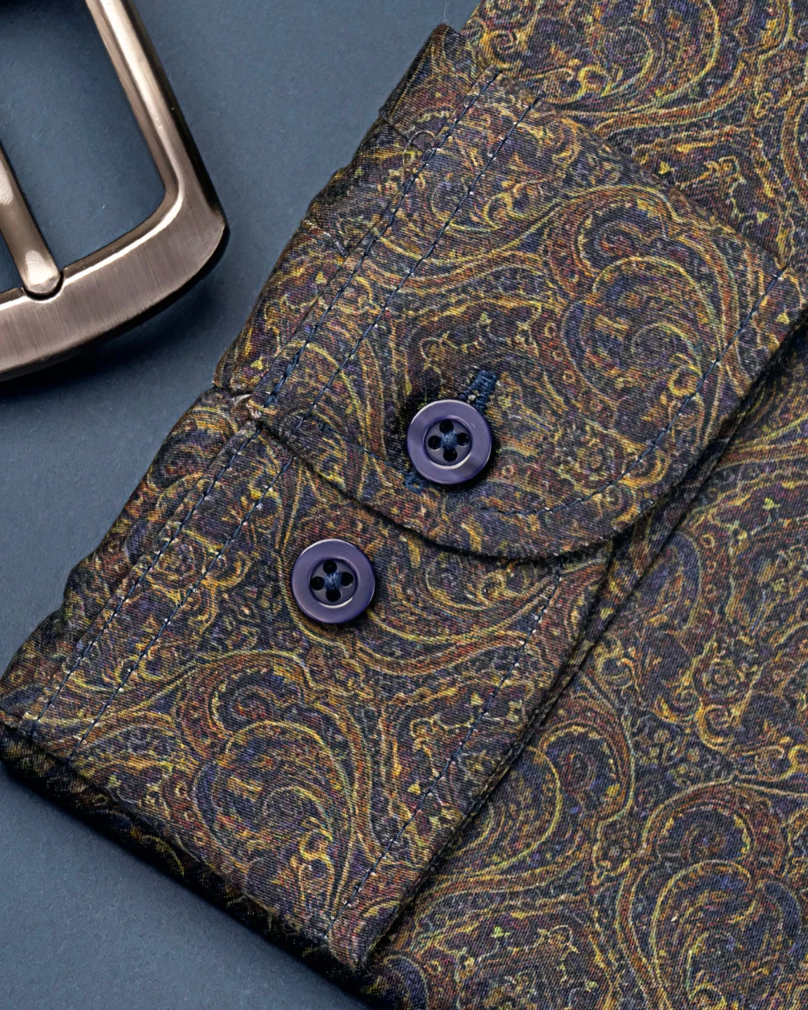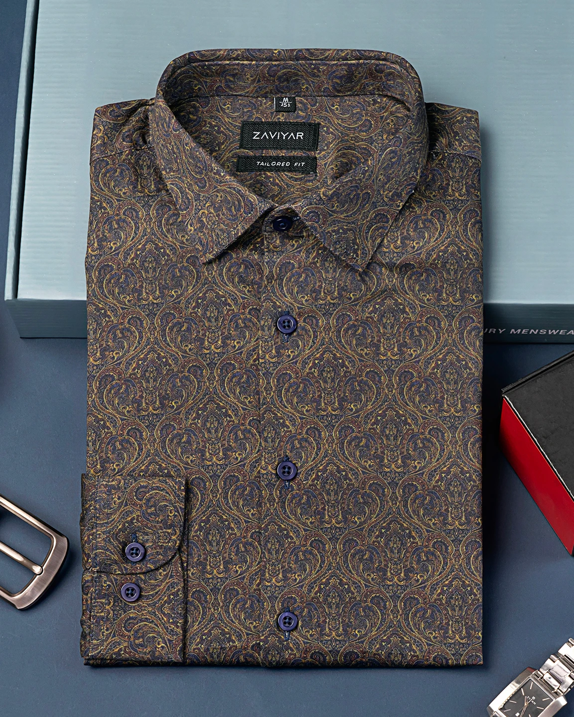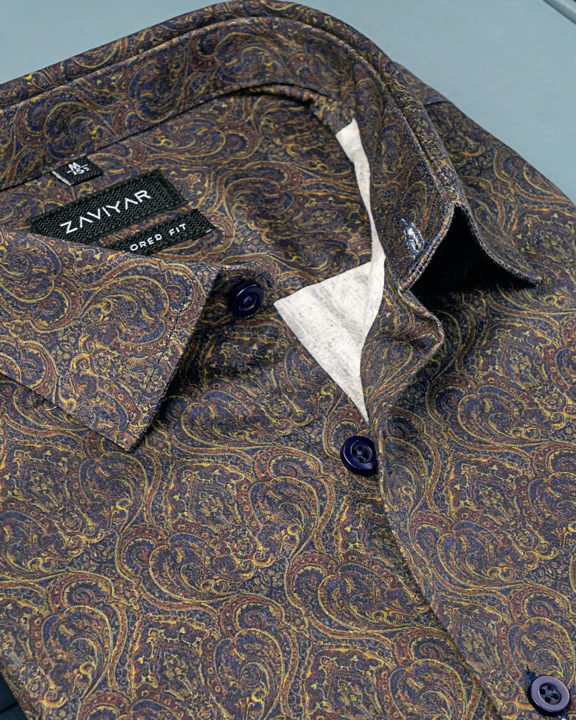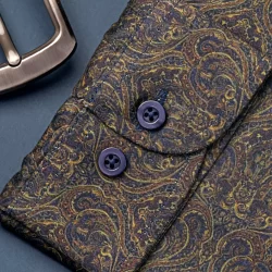 Printed cotton tie collar tailored fit woven shirt | Gulf blue