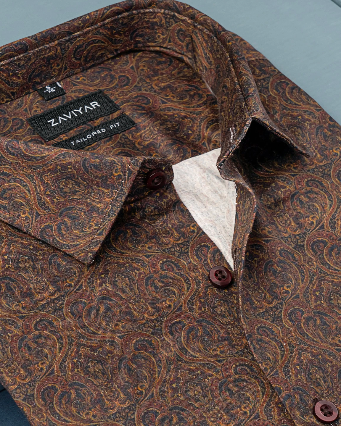Sold OutPrinted cotton tie collar tailored fit woven shirt | Sable Black