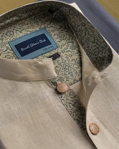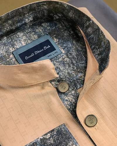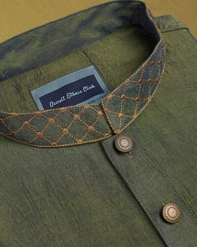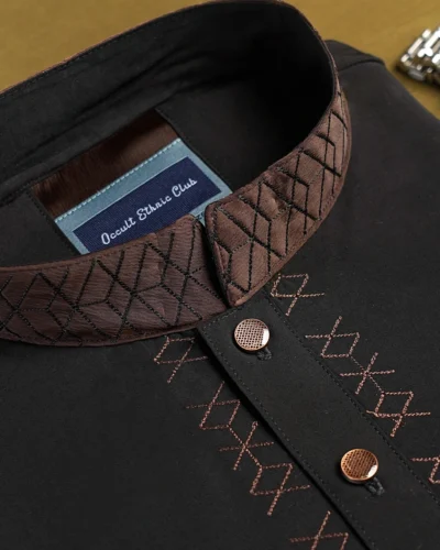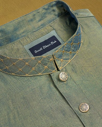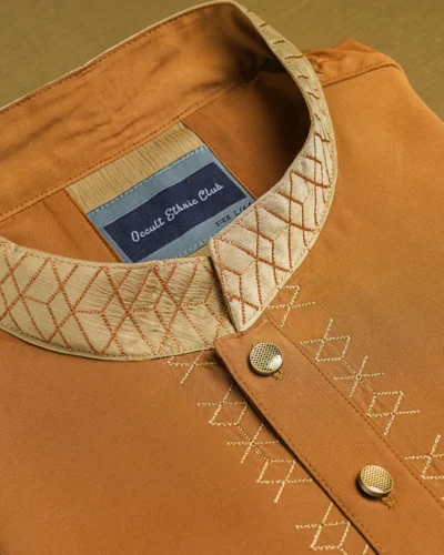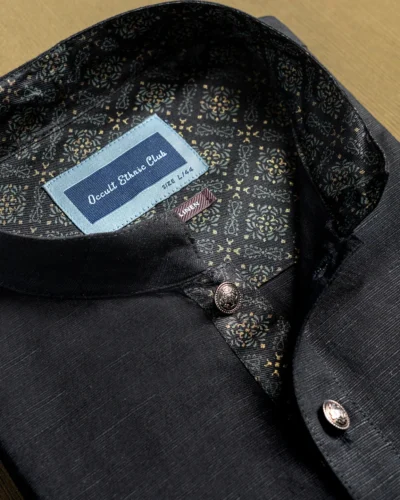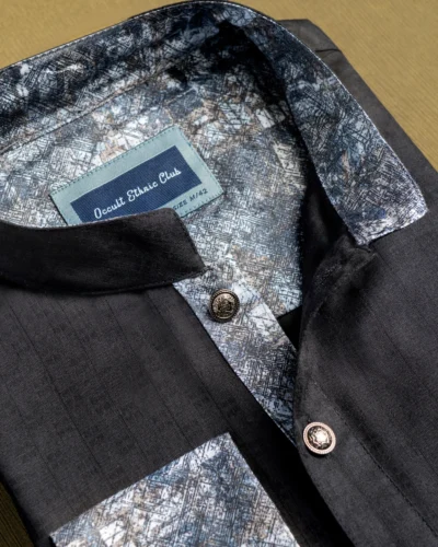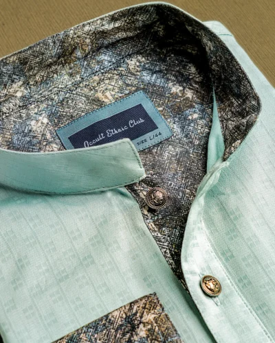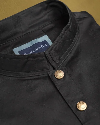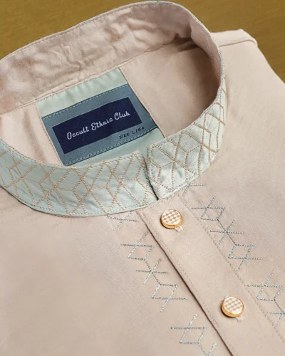 Product Description: Men’s jacquard cotton slim fit panjabi For Eid. Band double layer collar. Button placket with show button. Moon has cut & sew details. Long Sleeve with folding details, straight hem.