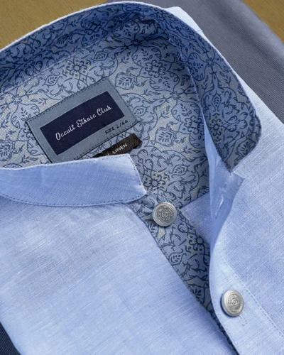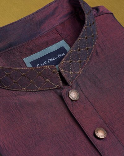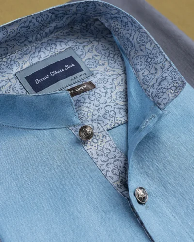 Product Description : Men’s regular fit Panjabi in viscose fabric with band collar & sleeve cuff piping details. Decorative stitch & metal snap button, long Sleeve, straight hem.