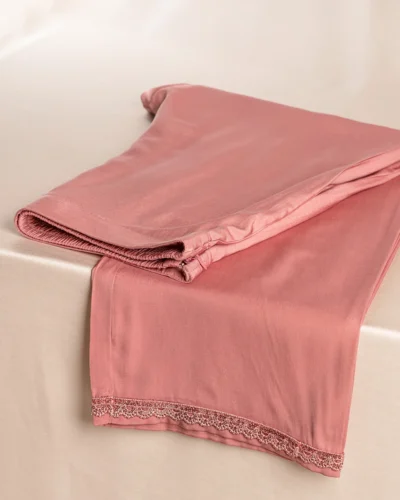 Product Description: Luxury Double Silk Regular Fit Bottom has wide hem details, has hemline lace details, has side zipper with hook details, has front waist band & back side has elastic.