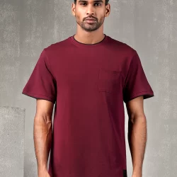 T-Shirt. Round neck and neck has rib details. Short sleeve & sleeve rib cuff, straight hem.