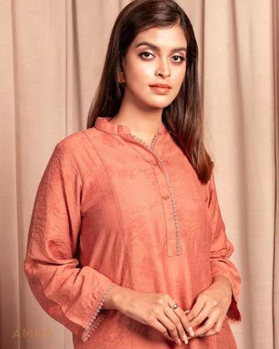 Female Band Collar With Lace Details co-ord set by AMNA | Salmon Orange