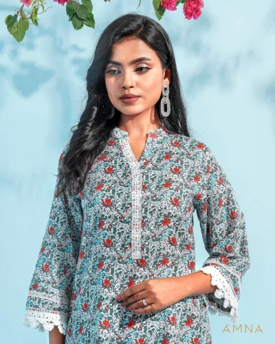 Printed cotton co-ord kurta & bottom set by AMNA | Aqua
