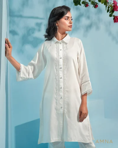 Cotton co-ord kurta and bottom set by AMNA | White